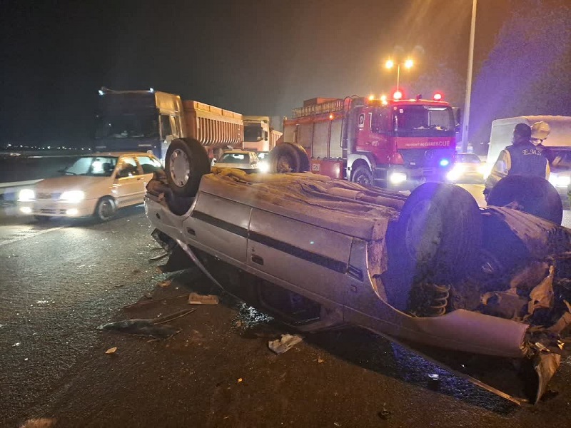 واژگونی خودروی سواری پژو ۴۰۵ در اتوبان قزوین _ زنجان